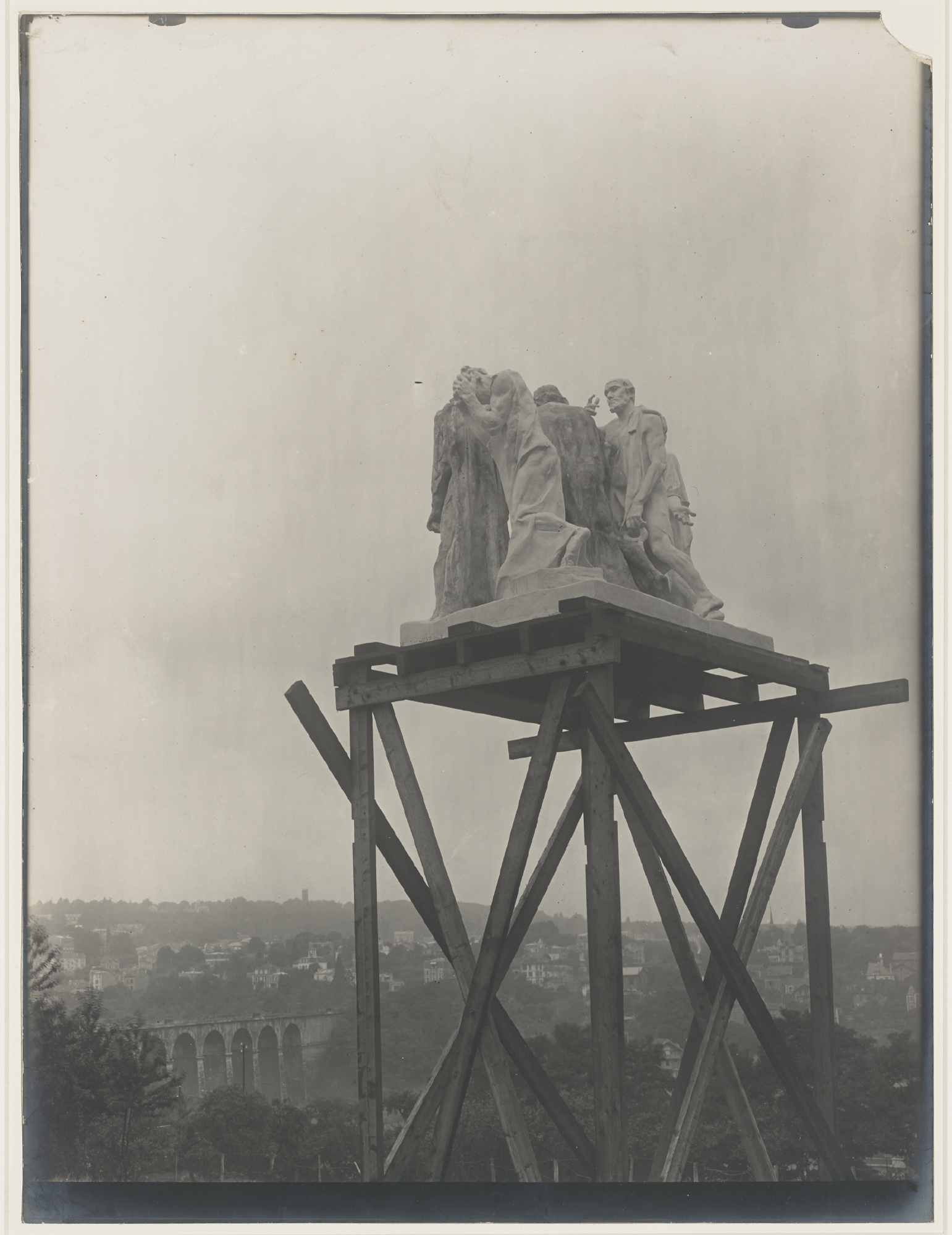 Visuel : Eugène Druet, Le Monument des Bourgeois de Calais sur un échafaudage, 1913, épreuve gélatino-argentique, 39,9 x 30 cm, Paris, musée Rodin, donation Rodin en 1916, Ph.00938 © musée Rodin