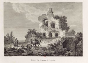 La période retenue pour les enquêtes s’ouvre naturellement avec les trois premiers voyages pittoresques illustrés édités par Saint-Non, Choiseul et Laborde, pour se refermer dans les années 1820, avec, notamment le premier volume des Voyages pittoresques de l’Ancienne France de Taylor et Nodier. En effet, à partir des années 1825, une double révolution scientifique (avec l’invention de l’archéologie moderne) et technique (le succès définitif du procédé lithographique), inaugure une nouvelle ère pour le livre illustré, le tourisme moderne et l’approche scientifique du monument historique. Cette périodisation a aussi l’avantage de placer l’imaginaire des voyages pittoresques en perspective avec ce moment, à la fois cohérent et tourmenté, du tournant des Lumières, dont bien des mutations culturelles se cristallisent, justement, dans les représentations du paysage. On laissera néanmoins ouverte la possibilité d’explorations comparatives en amont (en convoquant, par exemple, l’influence de la tradition savante des voyages d’antiquaires ou, dans un autre registre, les premiers voyages pittoresques au format de guides pratiques pour la découverte des beaux-arts à Paris ou ailleurs) et les prolongements en aval vers les mutations du genre après 1830, ou la réception et l’exploitation postérieure des gravures. D’une manière générale, nous serons ouverts à l’examen de propositions de contributions dédiées à des périodes plus tardives du XIXe siècle, pourvu qu’elles présentent, d’une façon ou d’une autre, un ancrage dans les enjeux et la période du tournant des Lumières.