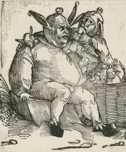 Barthel Beham, Deux mangeurs de fous, gravure sur bois, 27.5×23.3cm, vers 1524, Berlin, Kupferstichkabinett, n°inv. 873-1891