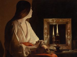 Georges de La Tour, La Madeleine pénitente aux deux flammes, vers 1640. Pigments à l’huile sur toile, 133 x 102 cm. New York, Metropolitan Museum of Art (détail)